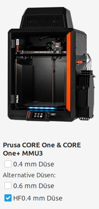 - Prusa Core One mit MMU3 und HF0.4 nozzle